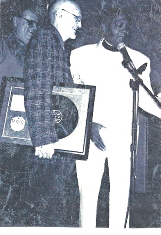 Billy giving an award to Hunter Hancock introduced R & B music to LA